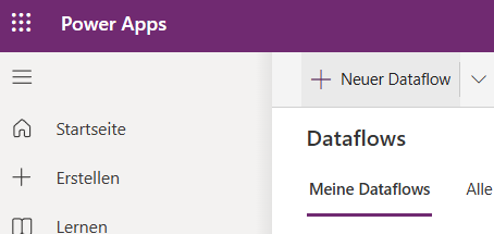 In dieser Ansicht wähle die Schaltfläche Neuer Dataflow oben links.
