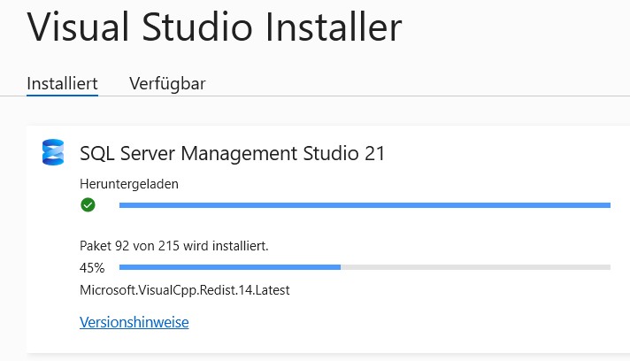 Bei SSMS habe ich mich für die in Oktober 2025 aktuellste Version 21 entschieden. Es können aber auch andere Clients verwendet werden.